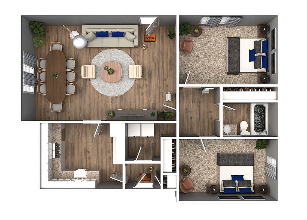 Modelo de apartamento: RockfieldDesde $9992 Dormitorios, 1 Baño, 900 sq ftDisponible Ahora![]()