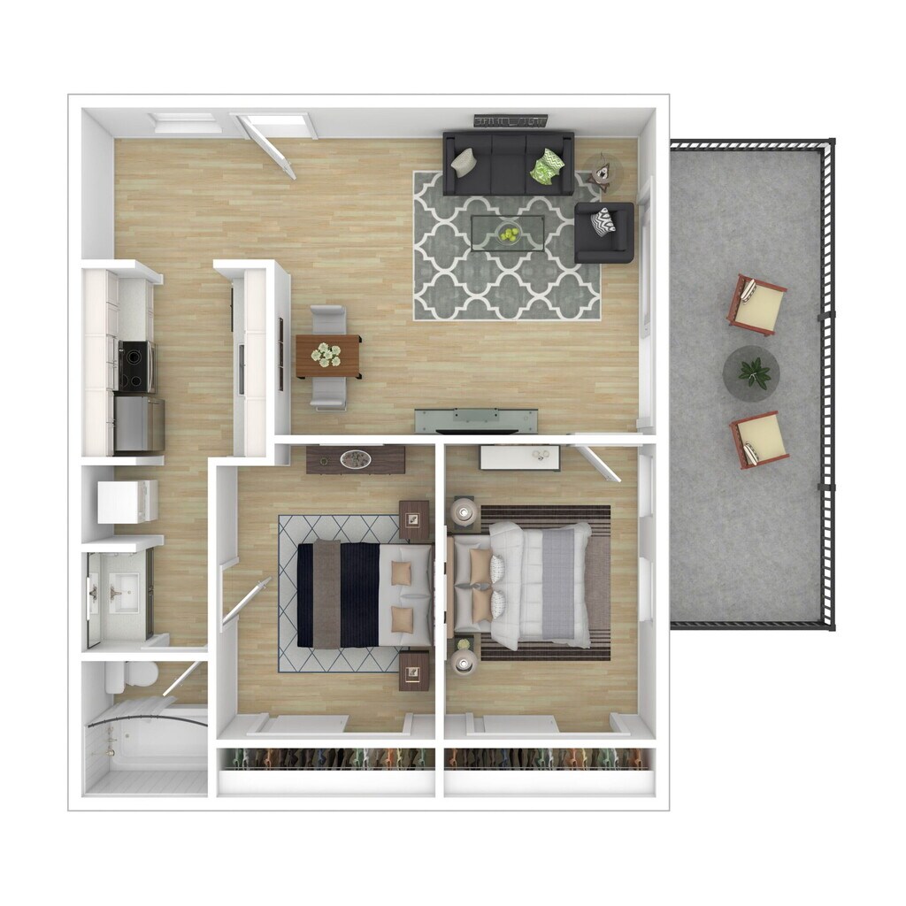 2 Dormitorios, 1 Baño, 840 pies²Disponible AhoraGalería del Modelo