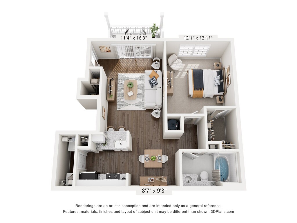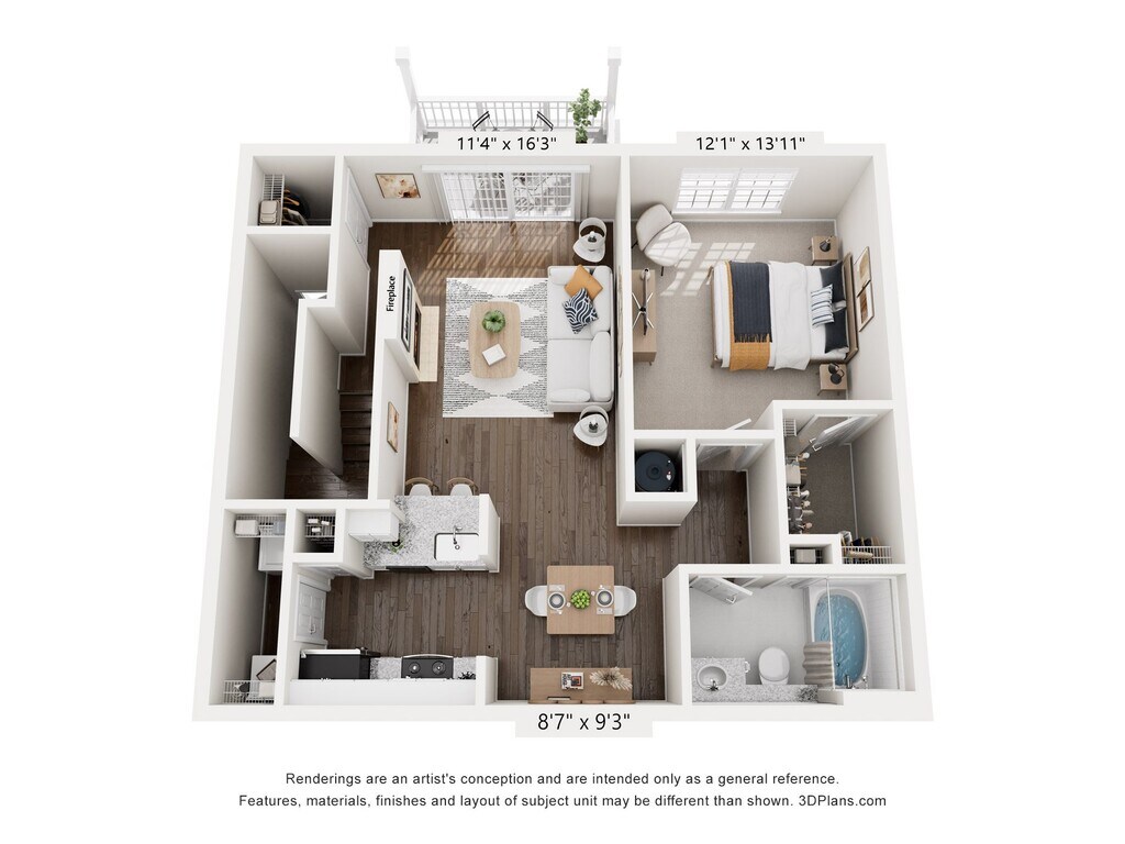 1 Dormitorio, 1 Baño, 809-894 pies²Disponible AhoraGalería del Modelo