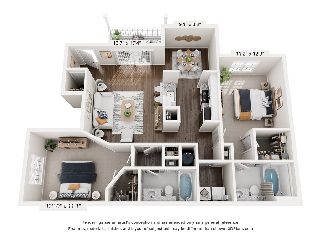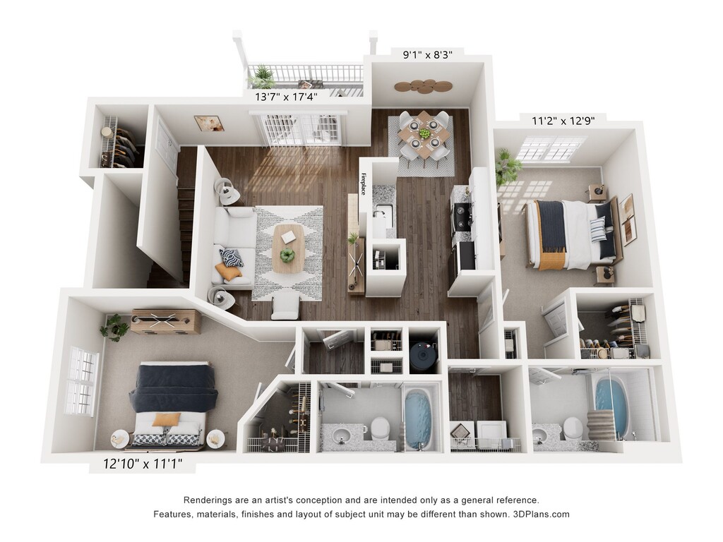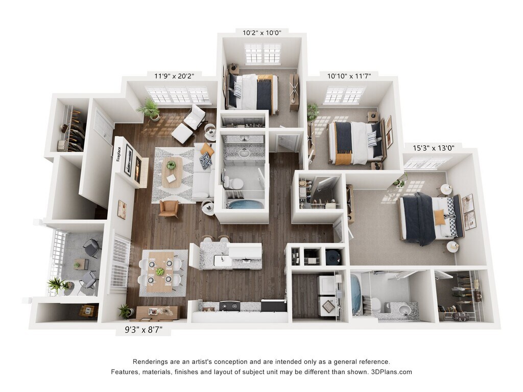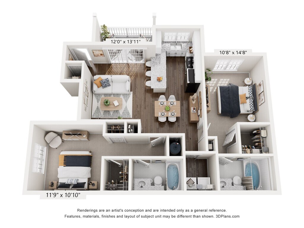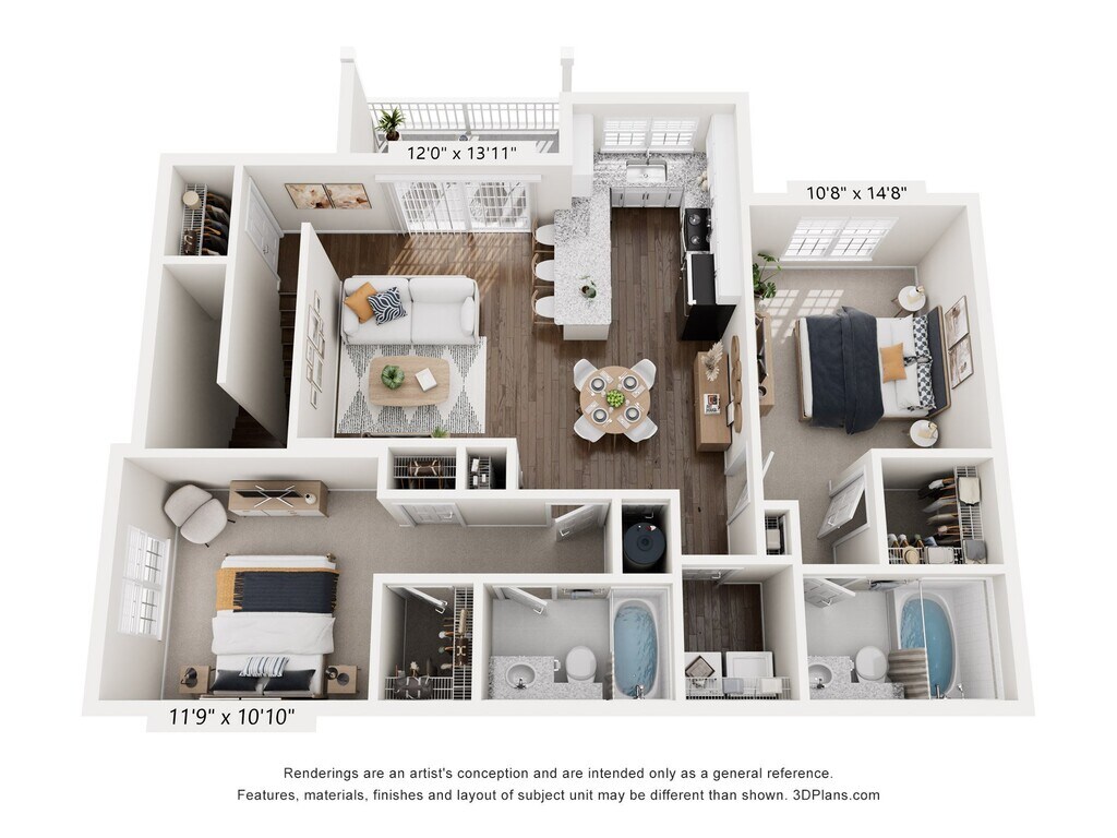 Modelo de apartamento: The CurrituckDesde $1,4452 Dormitorios, 2 Baños, 1093-1192 sq ftDisponible Ahora![]()