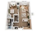 Modelo de apartamento: One Bedroom A1BDesde $1,9671 Dormitorio, 1 Baño, 811 sq ftDisponible AhoraLos planos son representaciones artísticas. Todas las dimensiones son aproximadas. El producto y las especificaciones reales pueden variar en tamaño o detalle. No todas las características están disponibles en cada vivienda en alquiler. Por favor, consulta con un representante para obtener más detalles.