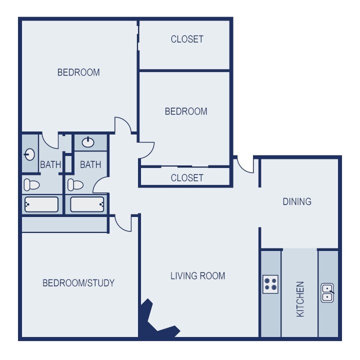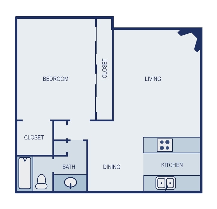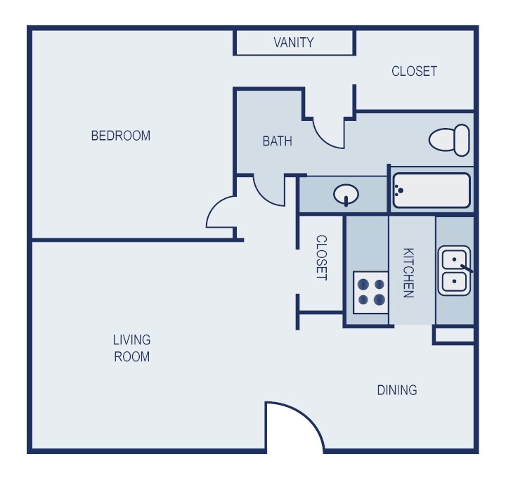 Modelo de apartamento: A31 Dormitorio, 1 Baño, 724 sq ftDisponible Ahora![]()