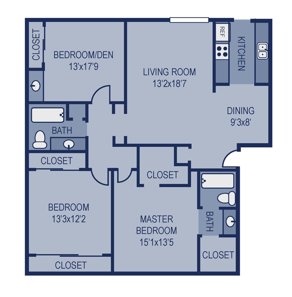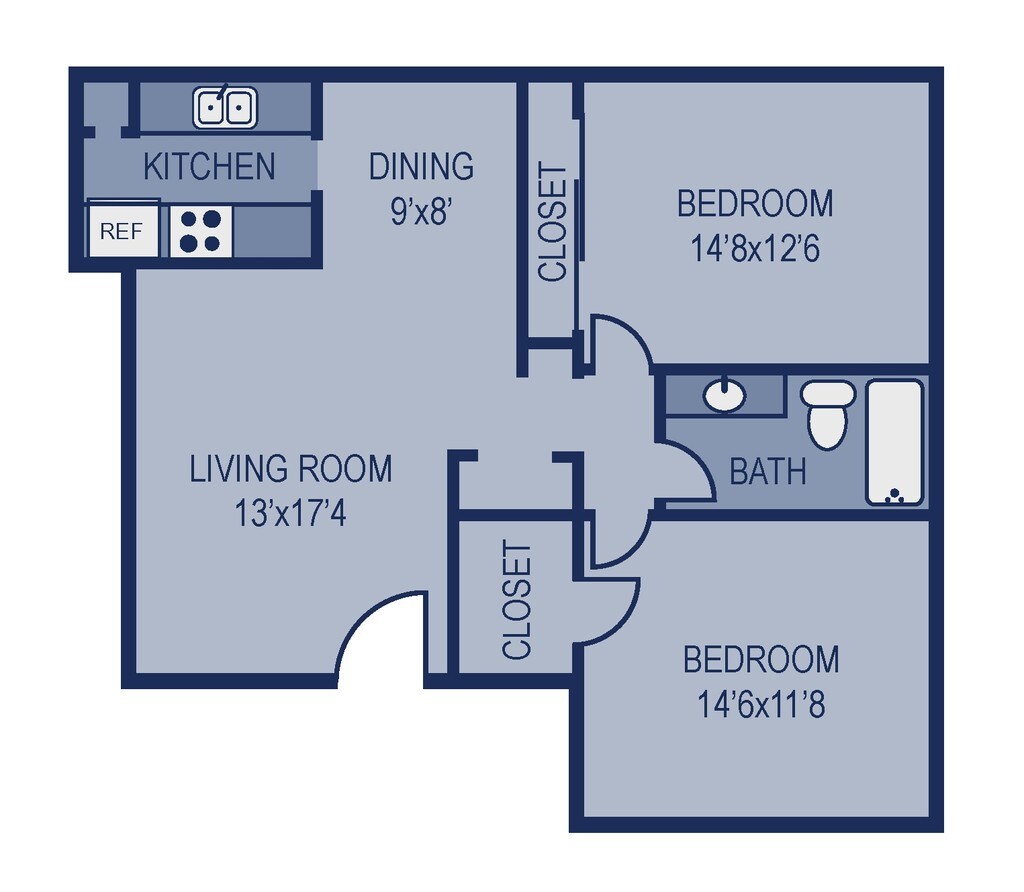 Modelo de apartamento: C32 Dormitorios, 2 Baños, 1080 sq ftDisponible Ahora![]()