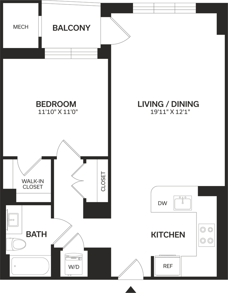1 Bed/1 Bath-A5-Renovated - Plano 1 Los planos son representaciones artísticas. Todas las dimensiones son aproximadas. El producto y las especificaciones reales pueden variar en tamaño o detalle. No todas las características están disponibles en cada vivienda en alquiler. Por favor, consulta con un representante para obtener más detalles.