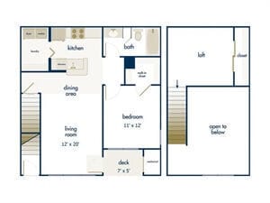 Modelo de apartamento: The Kingsley with LoftDesde $2,6831 Dormitorio, 1 Baño, 1030 sq ftDisponible AhoraLos planos son representaciones artísticas. Todas las dimensiones son aproximadas. El producto y las especificaciones reales pueden variar en tamaño o detalle. No todas las características están disponibles en cada vivienda en alquiler. Por favor, consulta con un representante para obtener más detalles