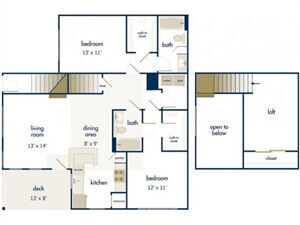 Modelo de apartamento: The Hampton with LoftDesde $3,4022 Dormitorios, 1 Baño, 1236 sq ftDisponible AhoraLos planos son representaciones artísticas. Todas las dimensiones son aproximadas. El producto y las especificaciones reales pueden variar en tamaño o detalle. No todas las características están disponibles en cada vivienda en alquiler. Por favor, consulta con un representante para obtener más detalles