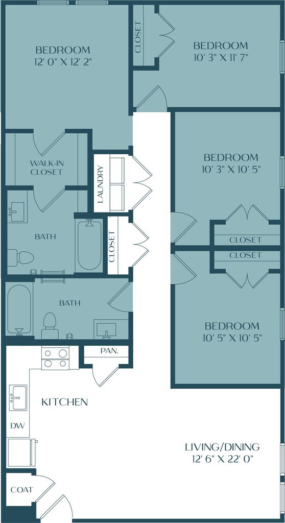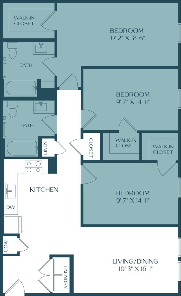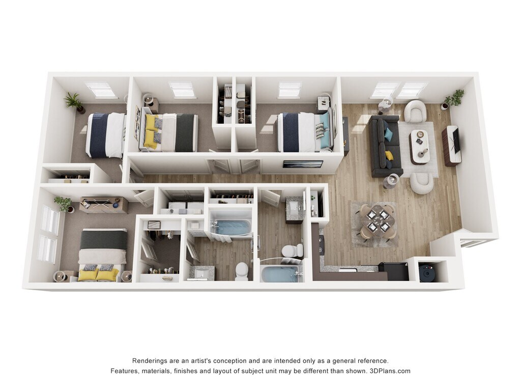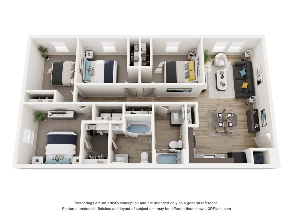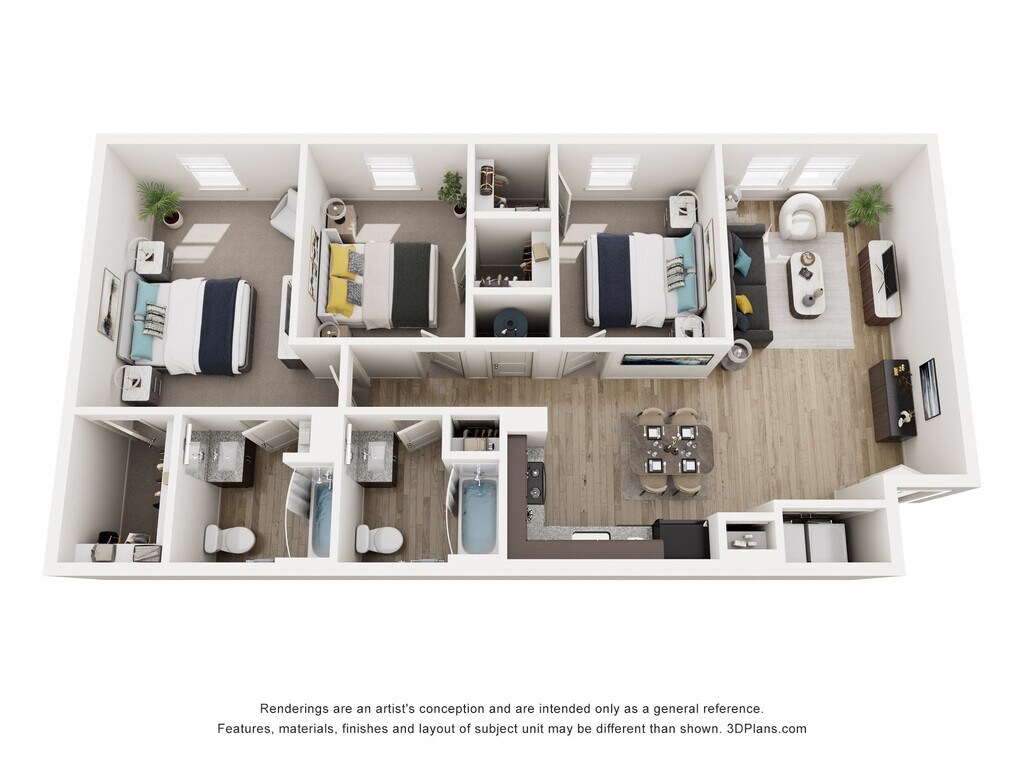 Modelo de apartamento: C3Desde $1,3743 Dormitorios, 2 Baños, 1175-1190 sq ftDisponible Ahora![]()