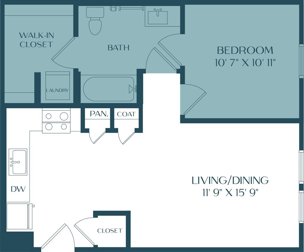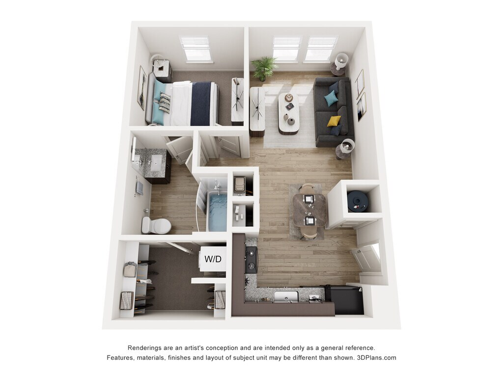 Modelo de apartamento: A1Desde $9921 Dormitorio, 1 Baño, 604 sq ftDisponible Ahora![]()
