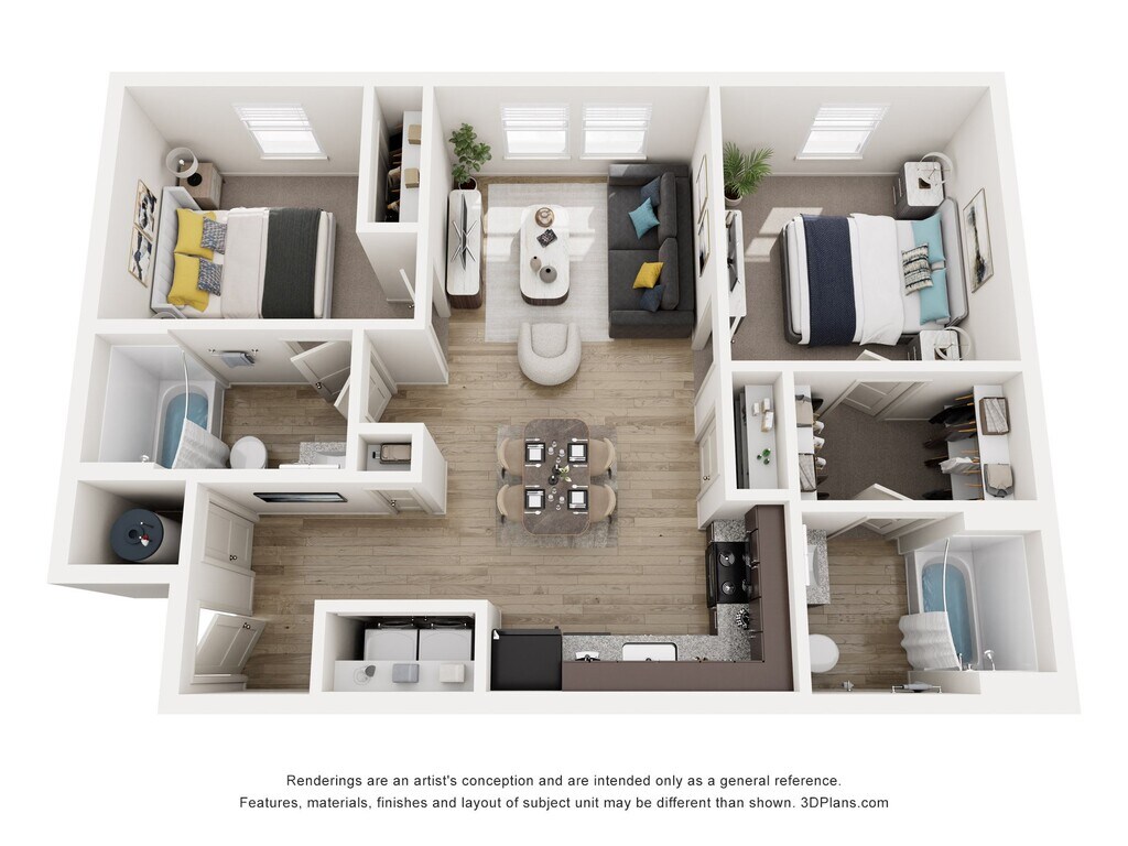 Modelo de apartamento: D1Desde $1,5264 Dormitorios, 2 Baños, 1250 sq ftDisponible Ahora![]()