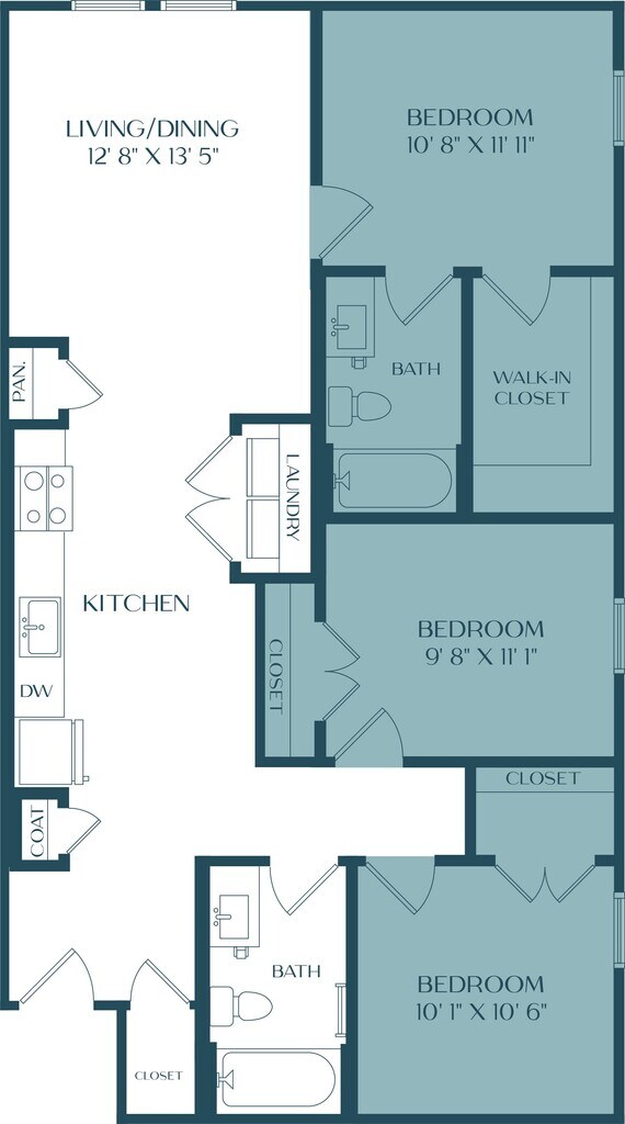 Modelo de apartamento: C2Desde $1,3743 Dormitorios, 2 Baños, 1075 sq ftDisponible Ahora![]()