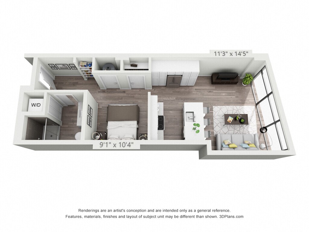 Estudio, 1 Baño, 510 pies²Disponible Apr 11Galería del Modelo