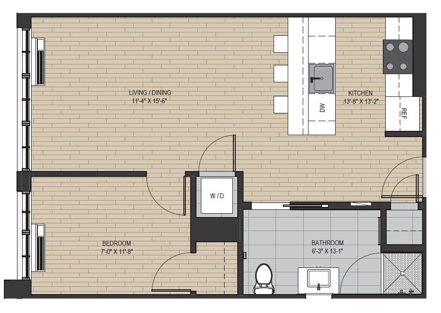 1 Dormitorio, 1 Baño, 894 pies²El más grandeEsta opción tiene las unidades más grandes para este modeloGalería del Modelo
