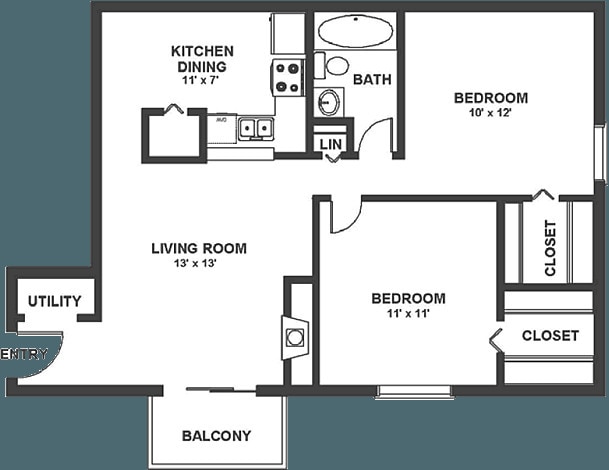 2 Dormitorios, 1 Baño, 866 pies²Galería del Modelo