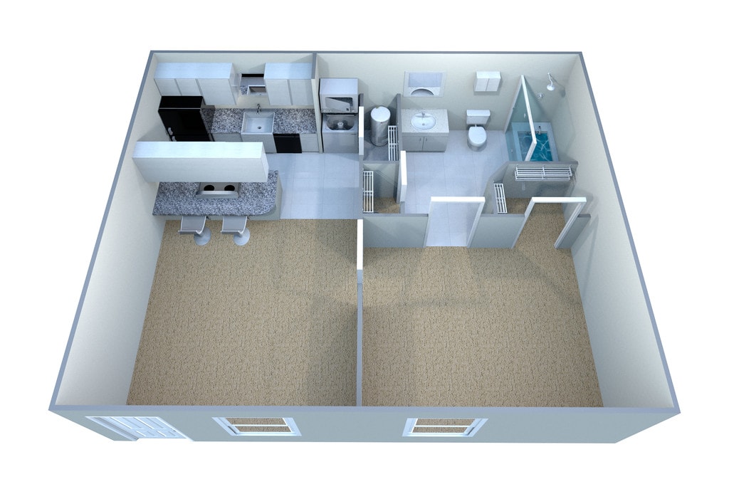 2 Dormitorios, 1 Baño, 767 pies²Galería del Modelo