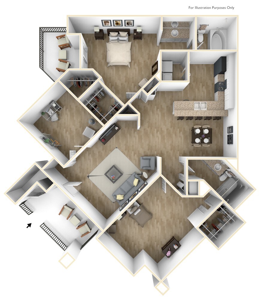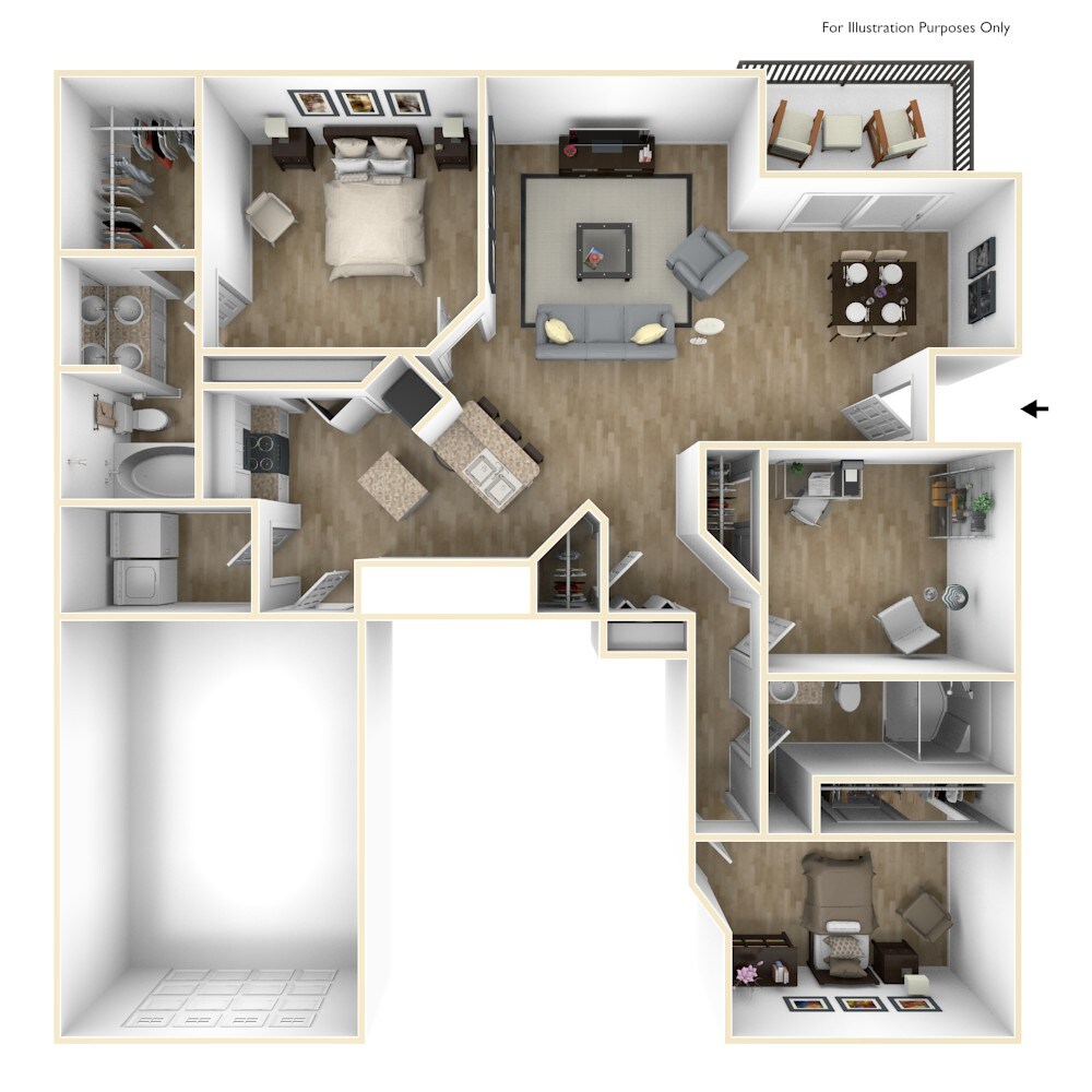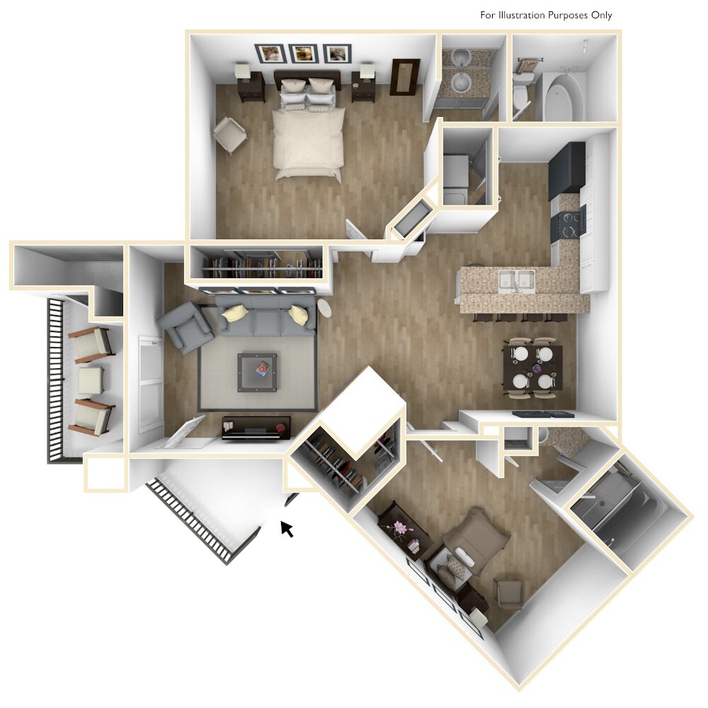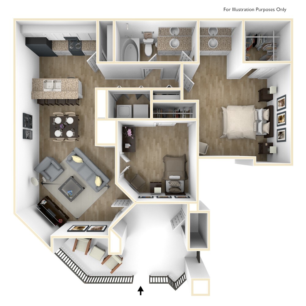 Modelo de apartamento: B1Desde $1,2422 Dormitorios, 1 Baño, 848 sq ftDisponible Ahora![]()