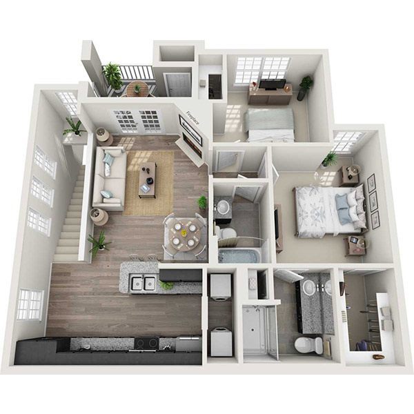 2 Dormitorios, 2 Baños, 1298 pies²El más grandeEsta opción tiene las unidades más grandes para este modeloGalería del Modelo