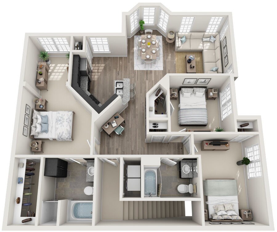 Modelo de apartamento: HarwickLlame para Precios3 Dormitorios, 2 Baños, 1336 sq ftNo Disponible![]()