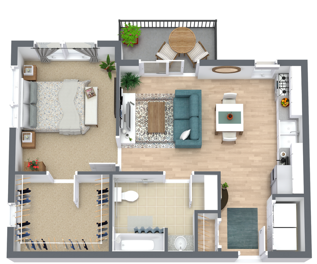 1 Dormitorio, 1 Baño, 570 pies²Disponible AhoraGalería del Modelo
