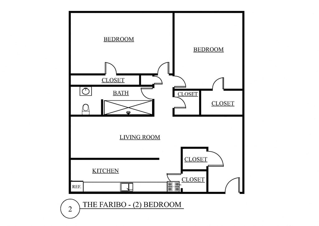 Modelo de apartamento: Two Bedroom ALlame para Precios2 Dormitorios, 1 Baño, 750 sq ftNo DisponibleTwo Bedroom A - Plano 1