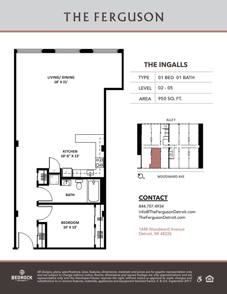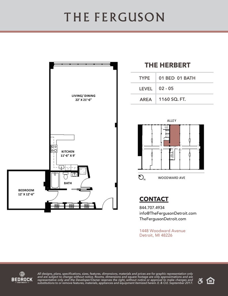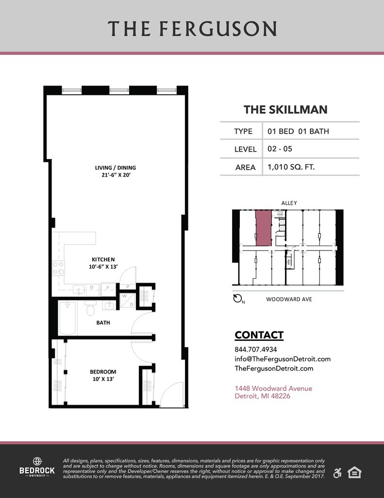 The Ferguson se encuentra en el Barrio District Detroit y el código postal 48226 de Detroit, MI. Esta comunidad está gestionada profesionalmente por Bedrock Management Services LLC