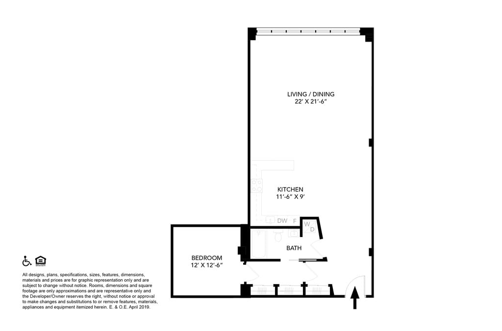 1 Dormitorio, 1 Baño, 1160 pies²Disponible AhoraGalería del Modelo
