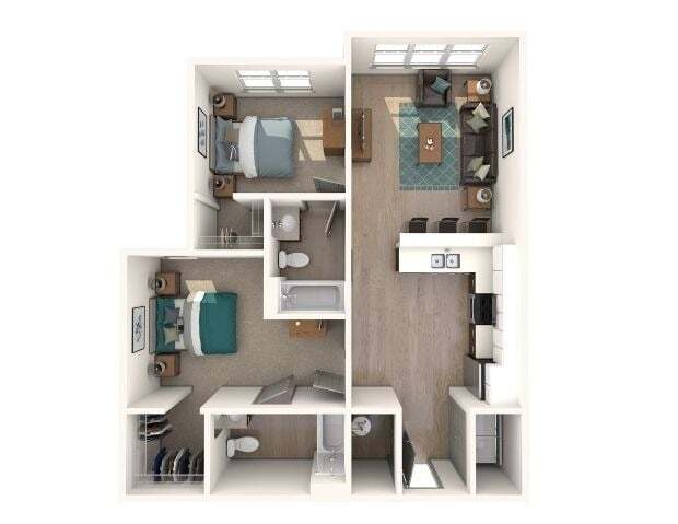 2 Dormitorios, 2 Baños, 933 pies²Disponible AhoraEl más grandeEsta opción tiene las unidades más grandes para este modeloGalería del Modelo