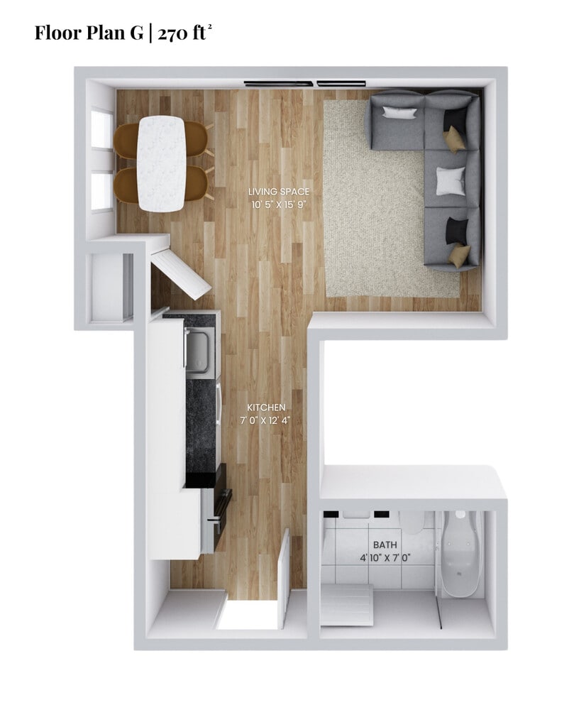 G - Plano 1 Unidad de apartamento: 211Modelo de apartamento: G$1,004Estudio, 1 Baño, 270 sq ftDisponible January 2, 2026Unidad de apartamento: 311Modelo de apartamento: G$1,004Estudio, 1 Baño, 270 sq ftDisponible January 2, 2026![]()