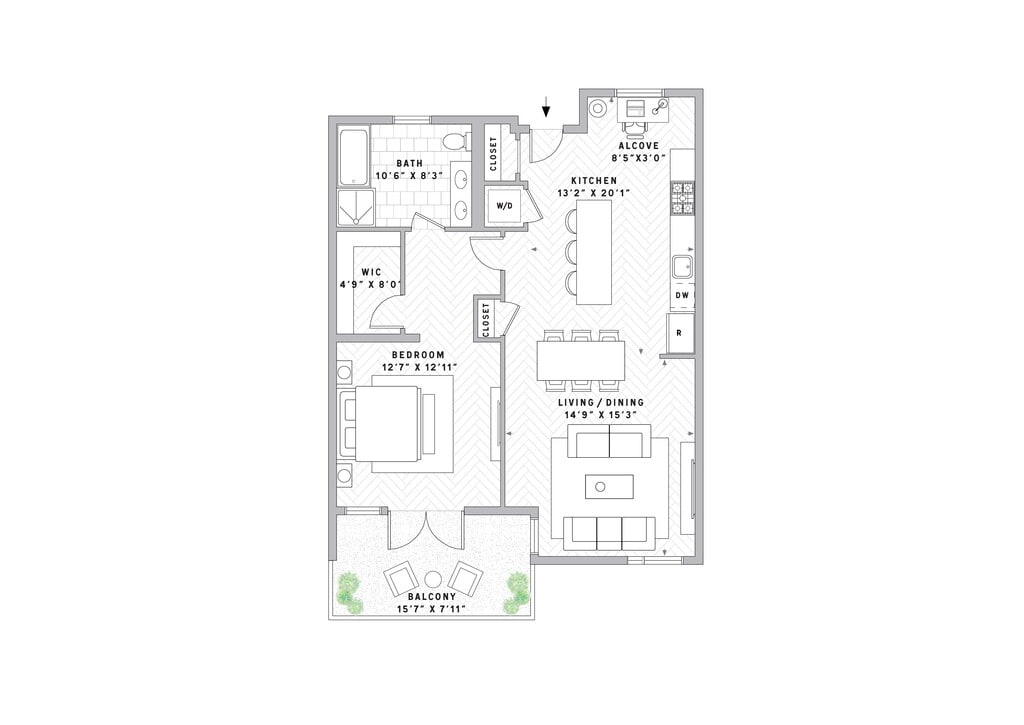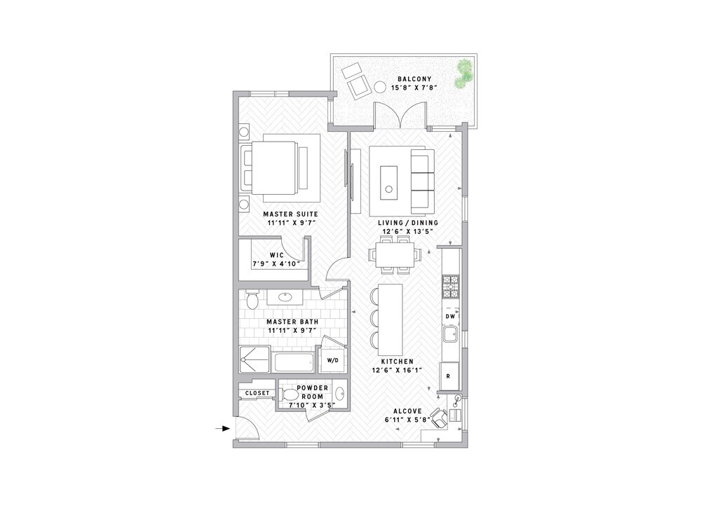 1 Dormitorio, 1.5 Baños, 918 pies²Galería del Modelo