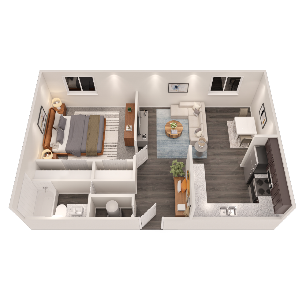 1 Dormitorio, 1 Baño, 558 pies²Disponible Nov 10El más grandeEsta opción tiene las unidades más grandes para este modeloGalería del Modelo