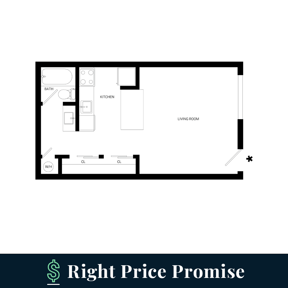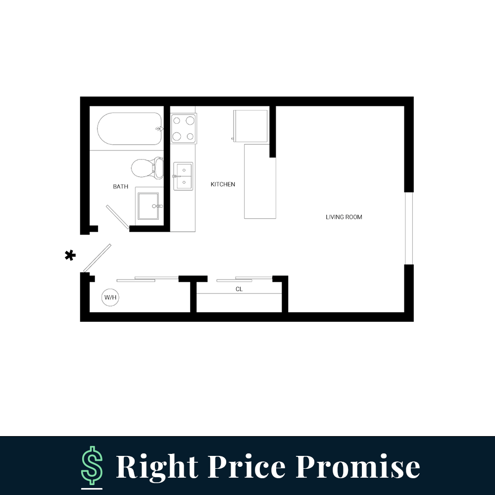 1 Dormitorio, 1 Baño, 435 pies²Precio Mensual TotalDisponible AhoraGalería del Modelo