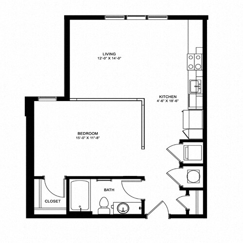 Estudio, 1 Baño, 628 pies²Galería del Modelo