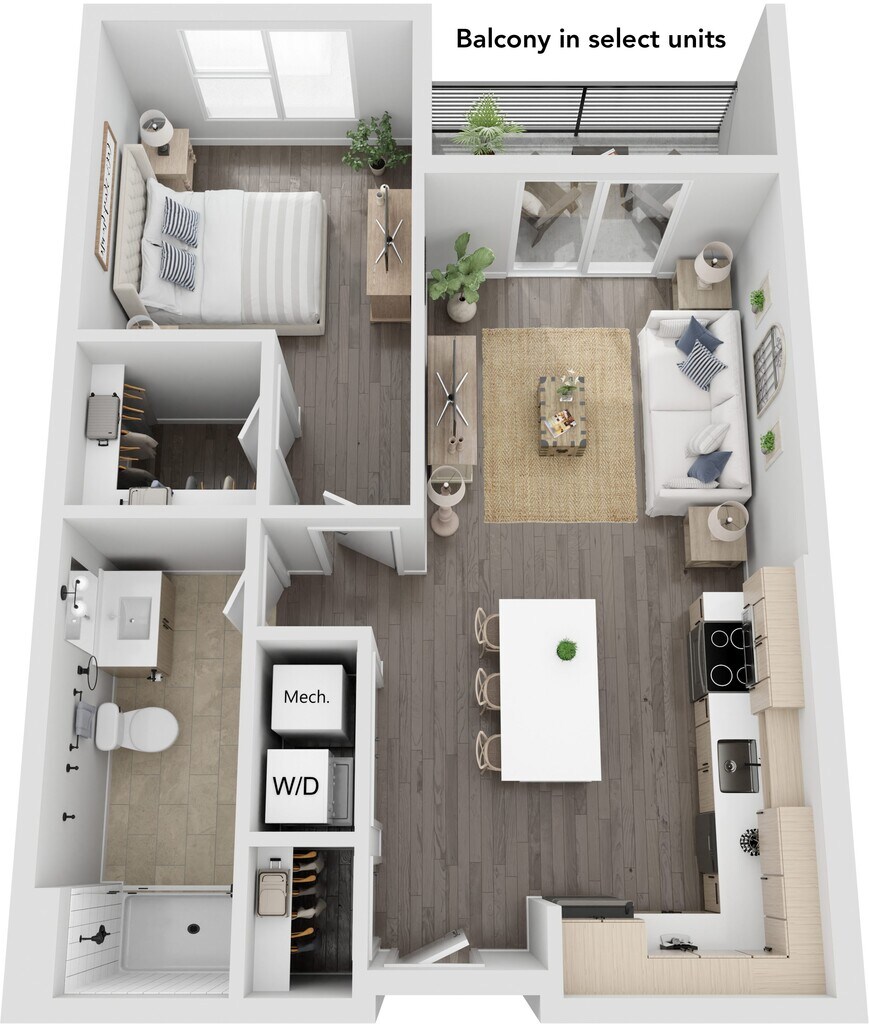 1 Dormitorio, 1 Baño, 796 pies²Disponible January 26, 2026Galería del Modelo
