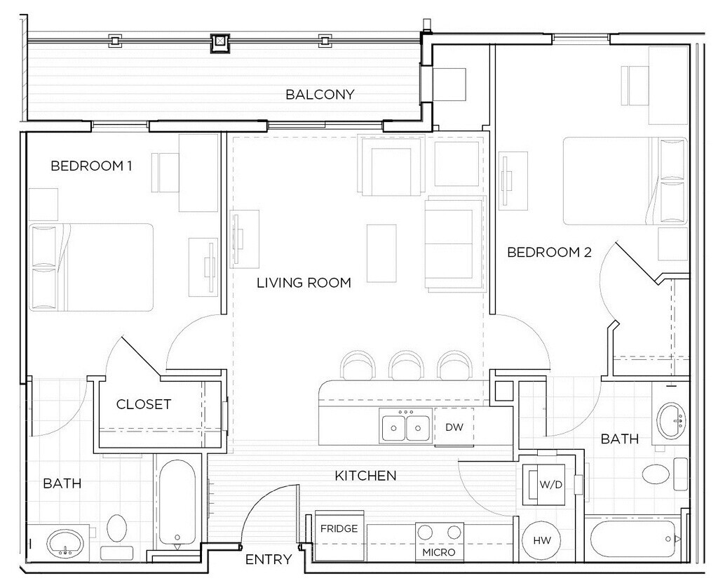 Modelo de apartamento: Duo II w/BalcDesde $1,2602 Dormitorios, 2 Baños, 956 sq ftDisponible Ahora![]()