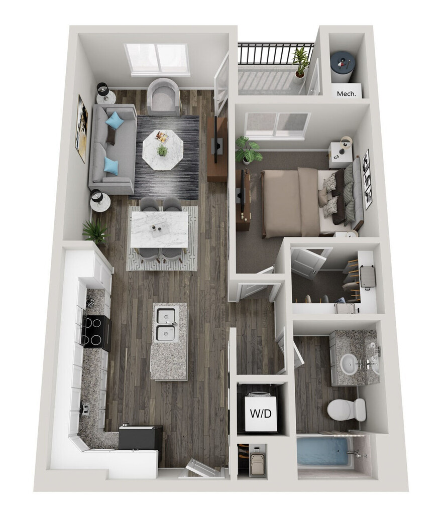 1 Dormitorio, 1 Baño, 708 pies²Galería del Modelo