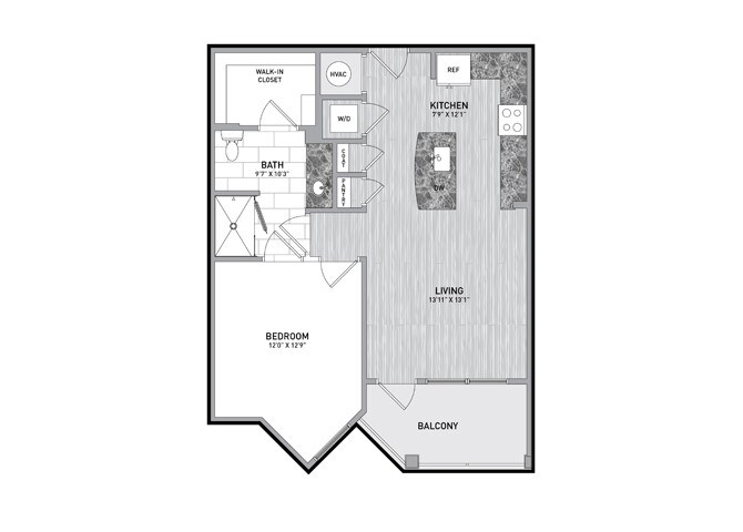 Modelo de apartamento: StudioLlame para PreciosEstudio, 1 Baño, 613 sq ftNo Disponible![]()