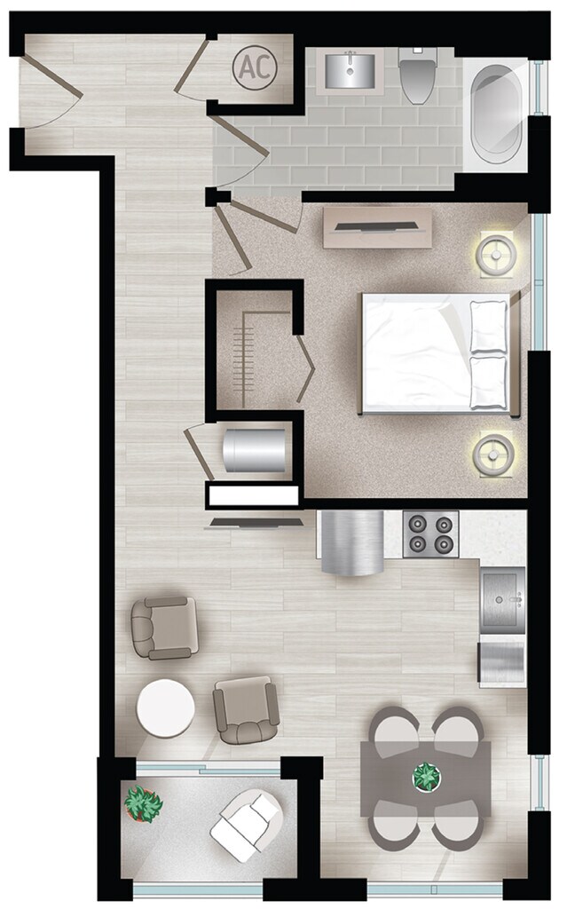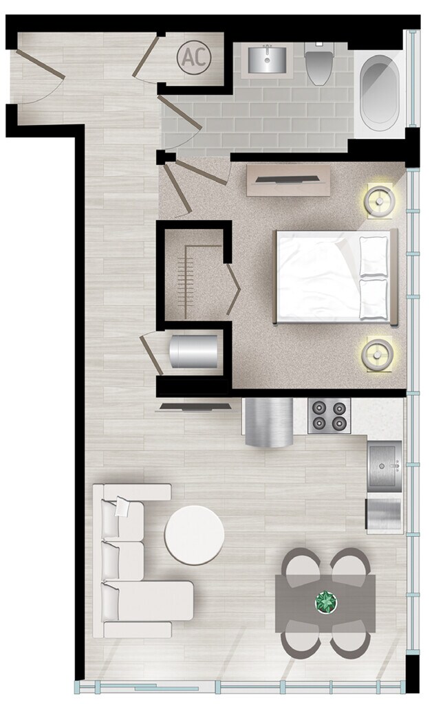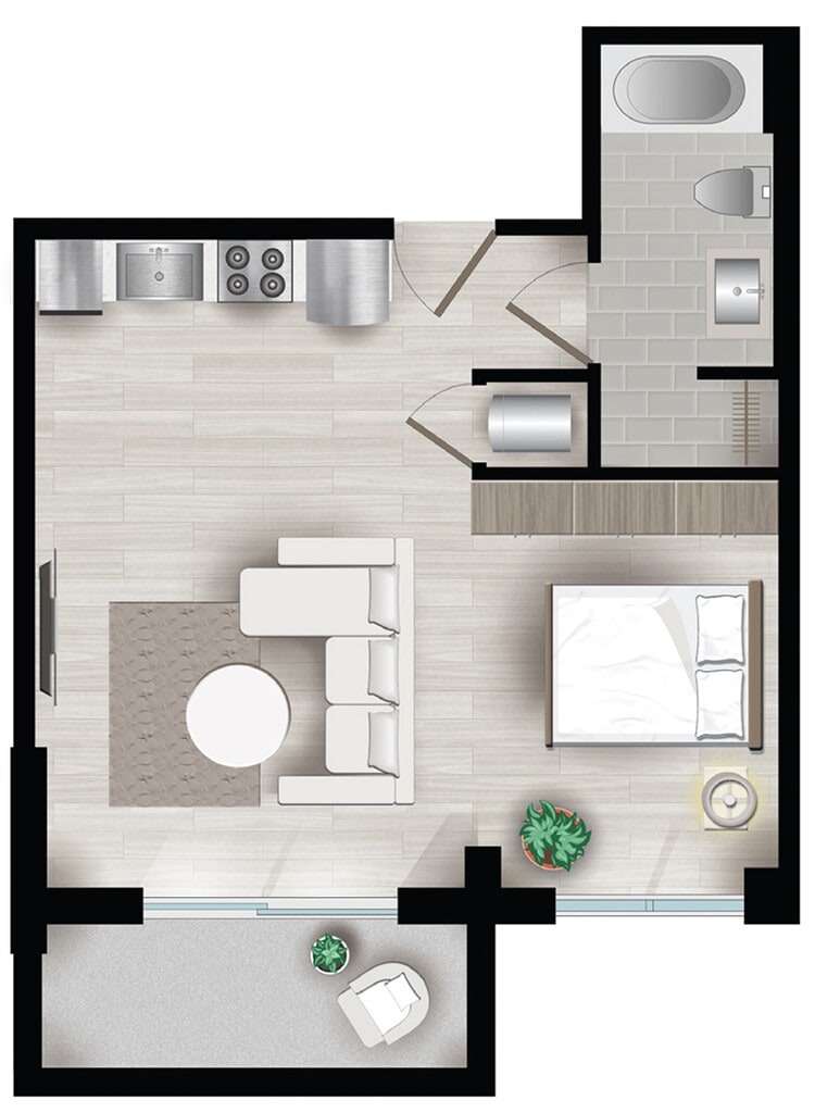 Estudio, 1 Baño, 550 pies²Disponible AhoraGalería del Modelo