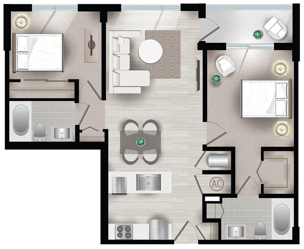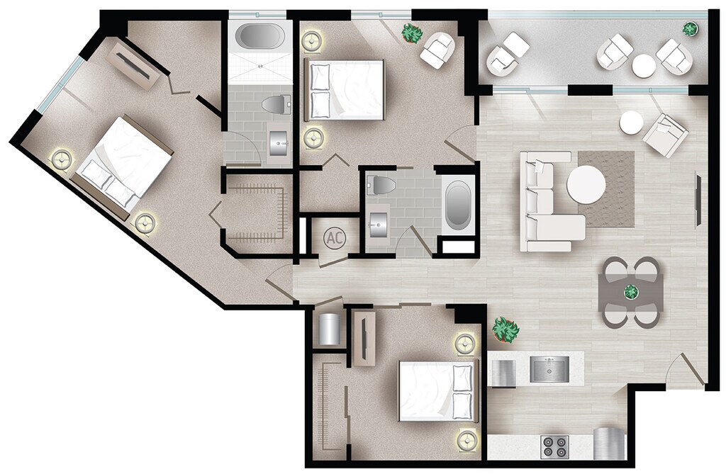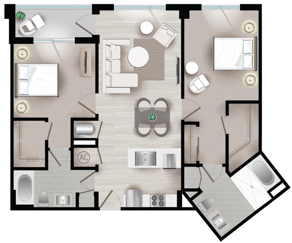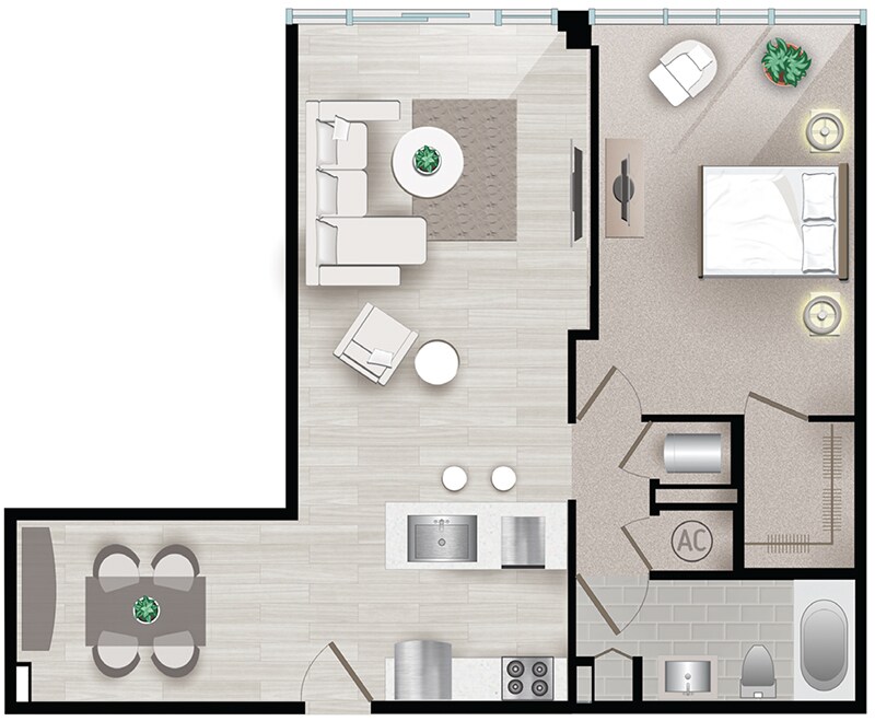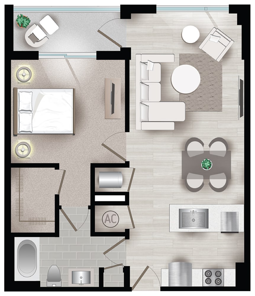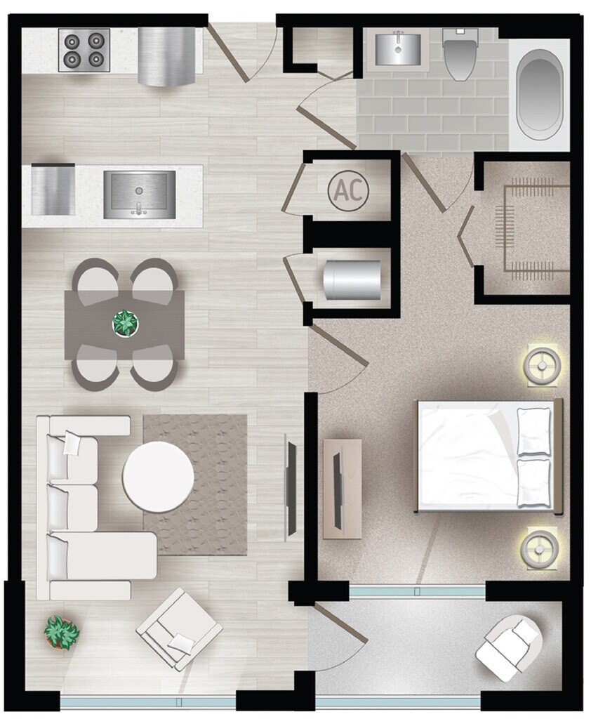 Modelo de apartamento: PalmettoDesde $1,995Estudio, 1 Baño, 518 sq ftDisponible Ahora![]()