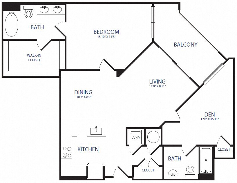 1 Dormitorio, 2 Baños, 1029 pies²Disponible January 9, 2026Galería del Modelo