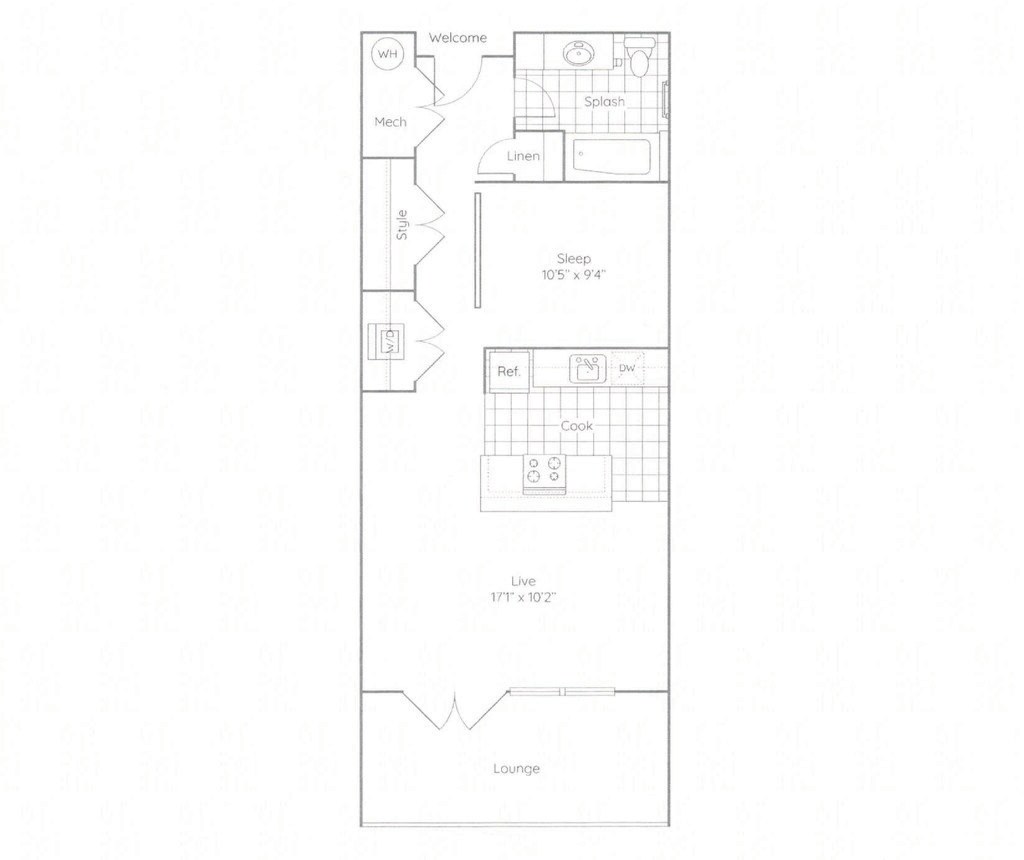 Modelo de apartamento: StudioLlame para PreciosEstudio, 1 Baño, 586 sq ftNo Disponible![]()