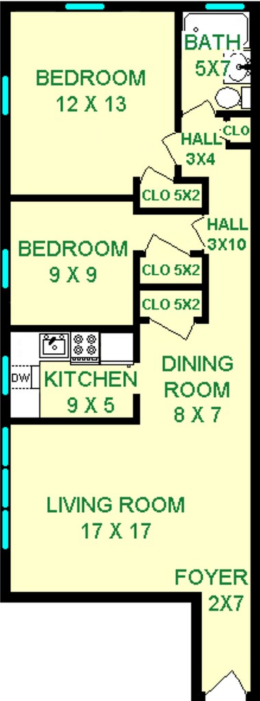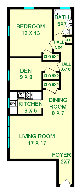 Lanner - Plano 7 Unidad de apartamento: FC-38Modelo de apartamento: Lanner1 Dormitorio, 1 Baño, 585 sq ftDisponible July 1, 2026![]()