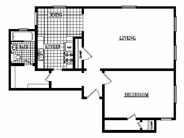Modelo de apartamento: 1 Bedroom1 Dormitorio, 1 Baño, 700-850 sq ftNo Disponible![]()