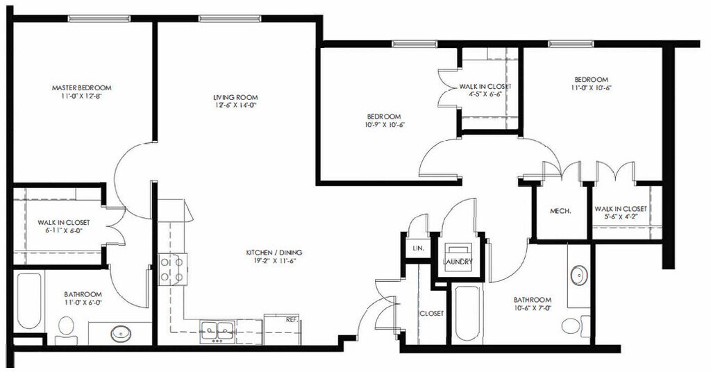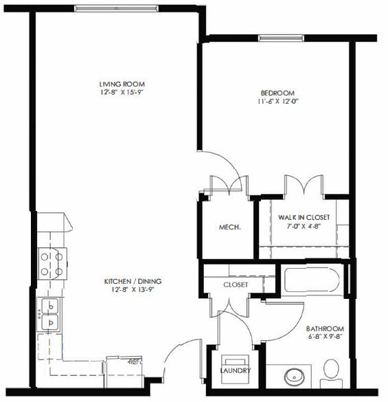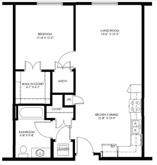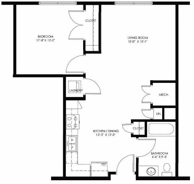 Modelo de apartamento: A11 Dormitorio, 1 Baño, 668 sq ftNo Disponible![]()