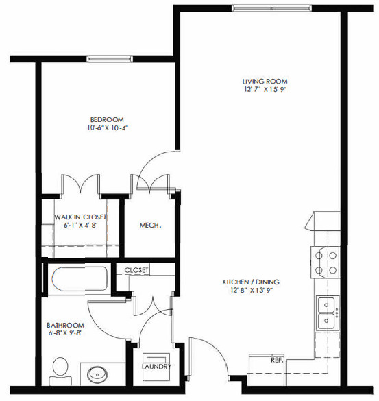 1 Dormitorio, 1 Baño, 668 pies²Galería del Modelo