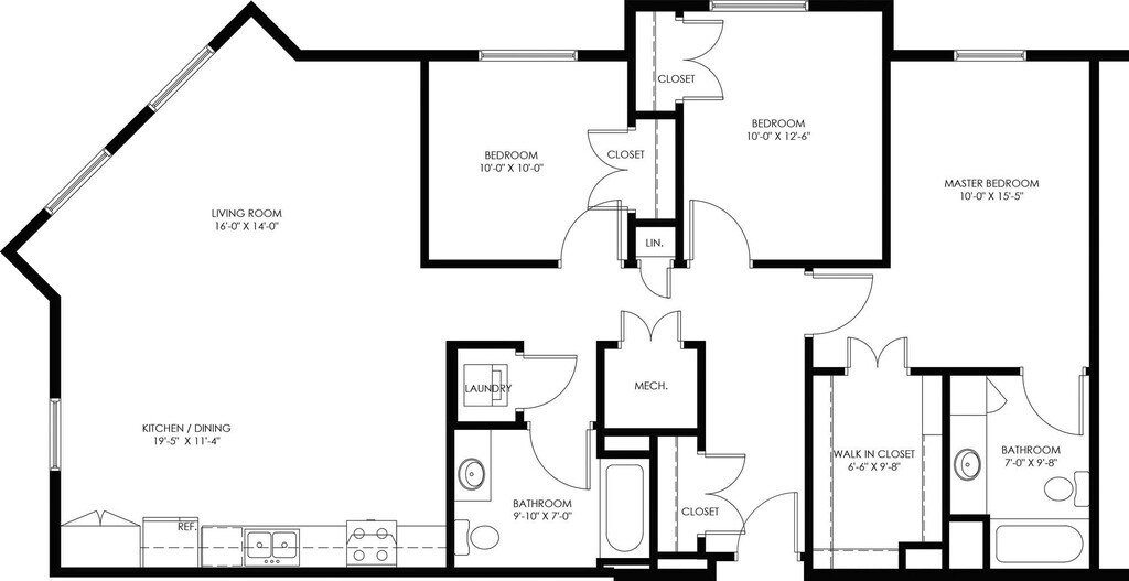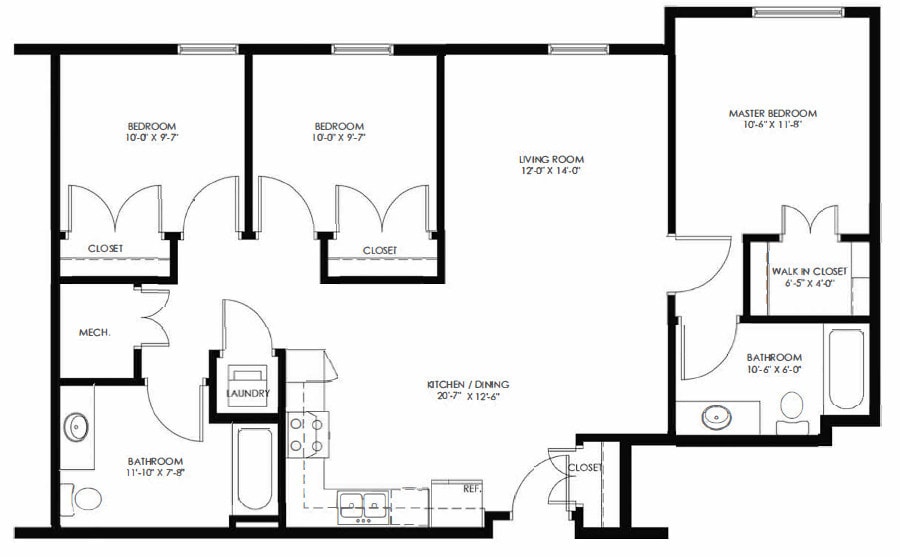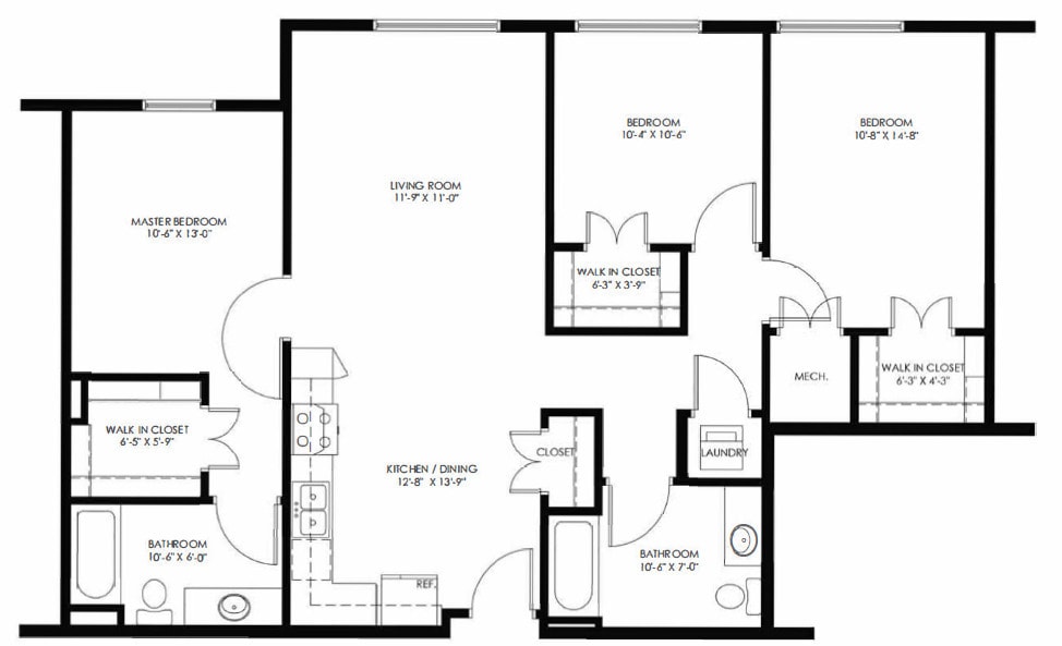 3 Dormitorios, 2 Baños, 1084 pies²Galería del Modelo