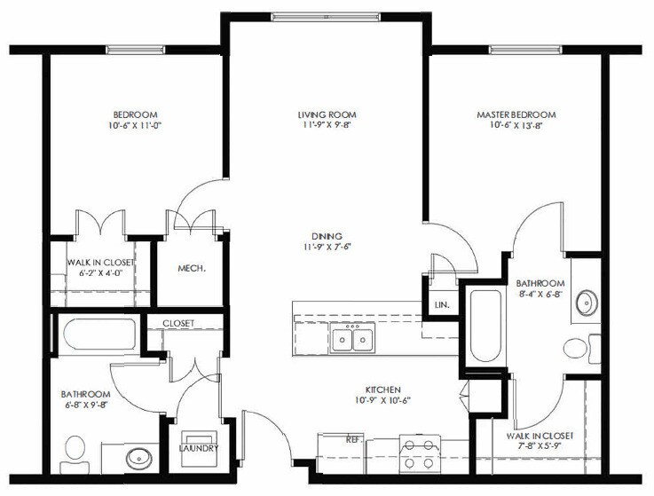 2 Dormitorios, 2 Baños, 897 pies²Galería del Modelo