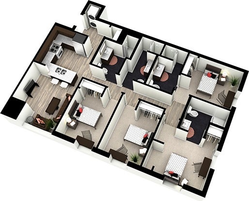 Modelo de apartamento: 4x4$7494 Dormitorios, 4 Baños, 1393 sq ftDisponible August 14, 2026![]()