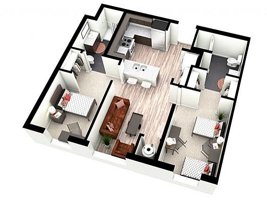 2x2 Large - Plano 1 Unidad de apartamento: PrivateModelo de apartamento: 2x2 Large$9192 Dormitorios, 2 Baños, up to 995 sq ftDisponible August 14, 20264 Dormitorios