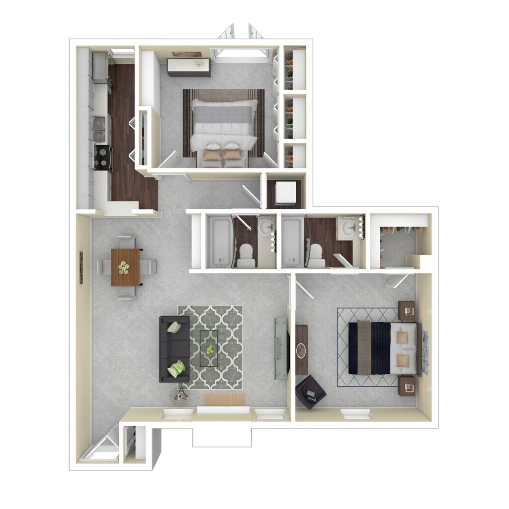 2 Dormitorios, 2 Baños, 1034 pies²Disponible AhoraEl más grandeEsta opción tiene las unidades más grandes para este modeloGalería del Modelo