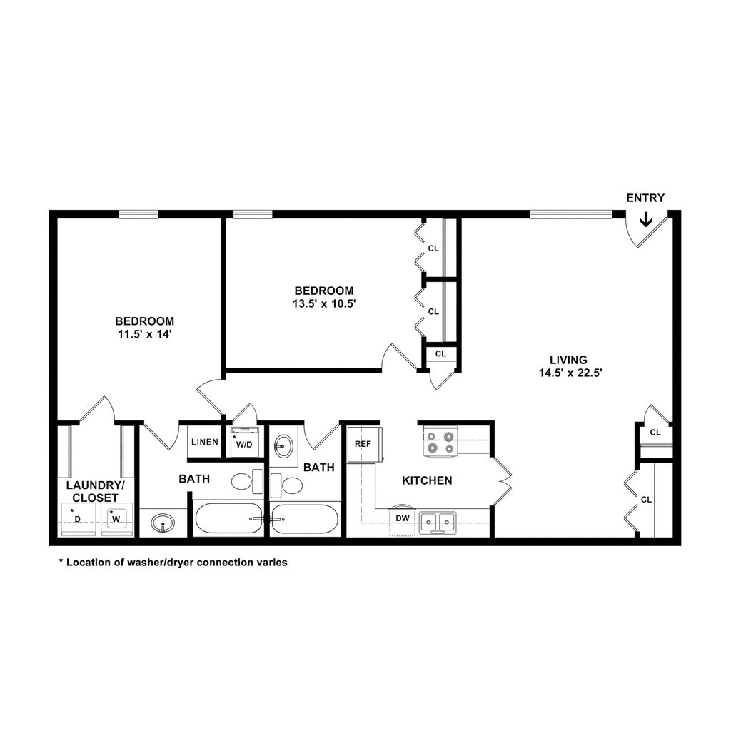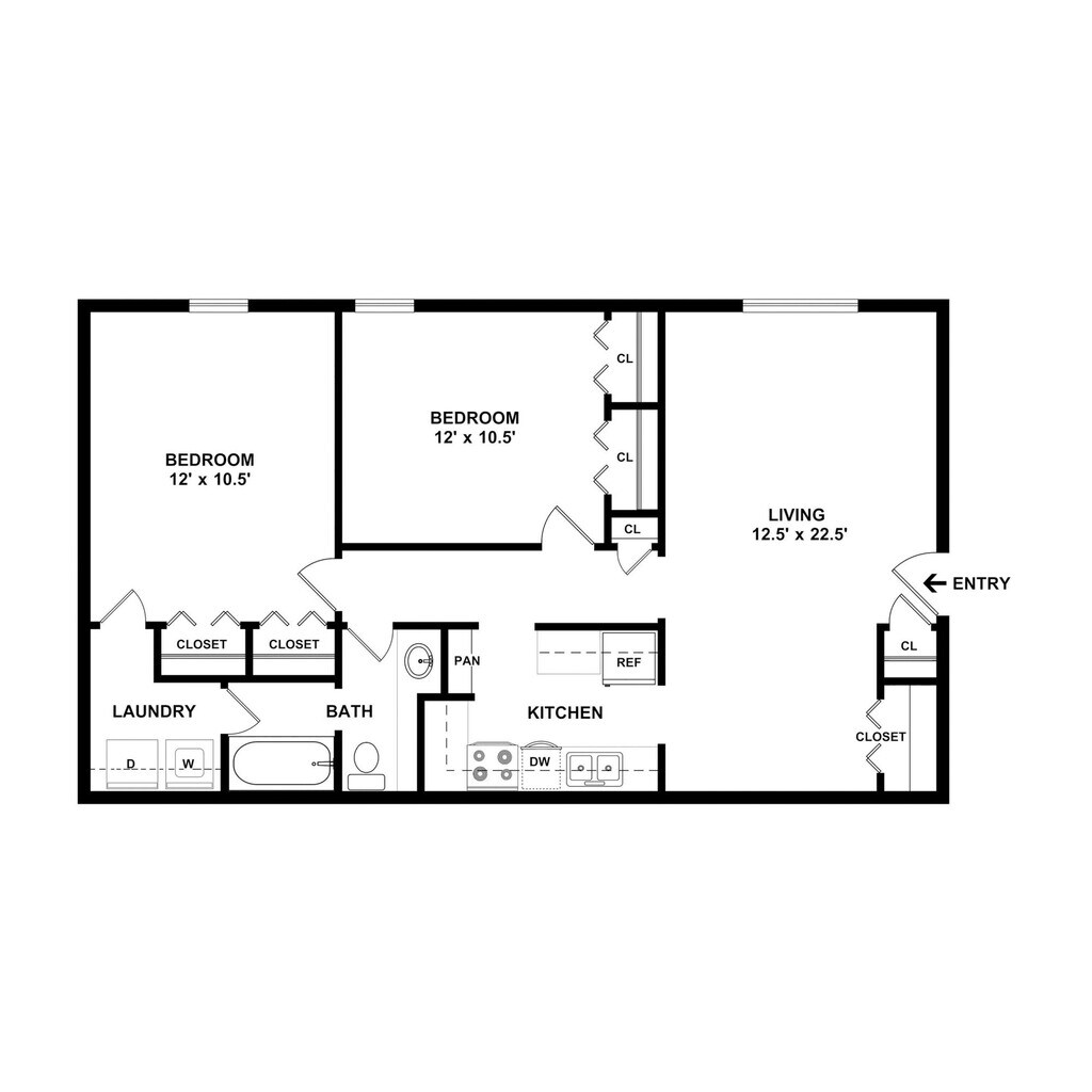 Modelo de apartamento: Unit B - Two BedroomDesde $1,5242 Dormitorios, 1 Baño, 932 sq ftDisponible AhoraPlanosFotos![]()