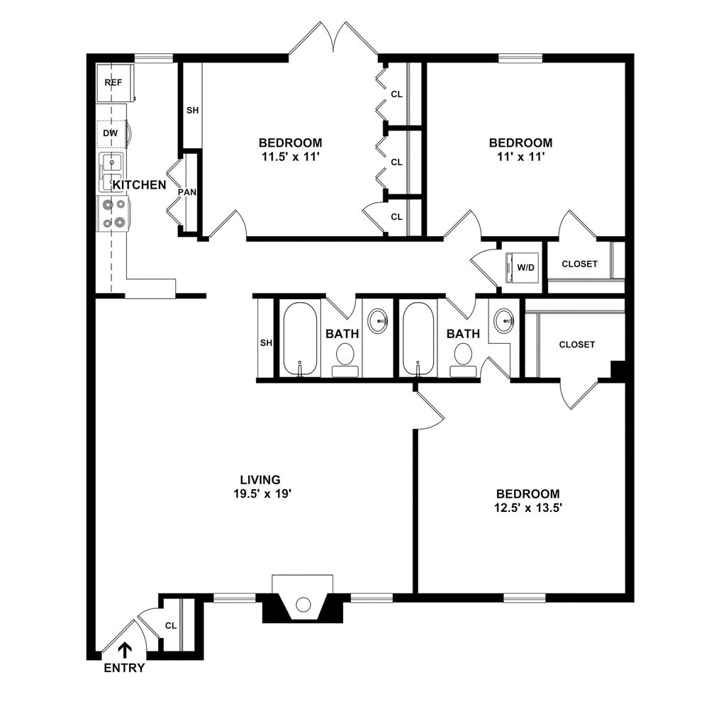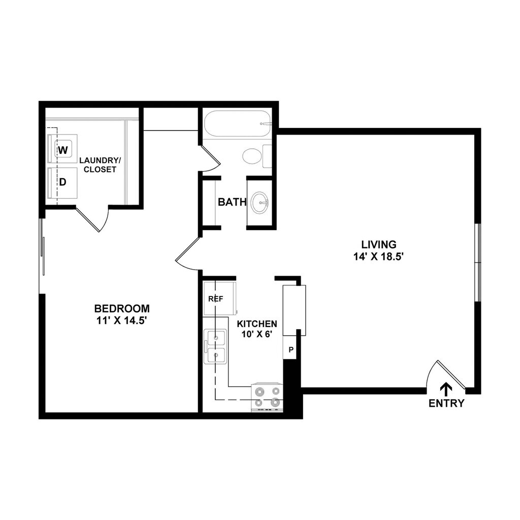 Unit A - One Bedroom - Plano 8 Unidad de apartamento: 205Modelo de apartamento: Unit A - One Bedroom$1,2501 Dormitorio, 1 Baño, 760 sq ftDisponible Ahora2 Dormitorios